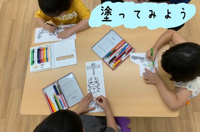 この日は夏の生き物を中心としたぬりえを行いました(*^^*)