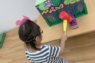 4か所から出てくるワニをよく見て、素早くピコピコハンマーで叩いていきました
