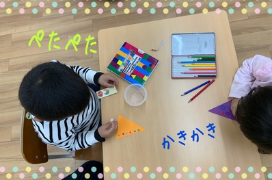自分で選んだ三角形の画用紙に色鉛筆で模様を描いたり、大小様々なシールを貼ったりして飾りつけをしてくれた子どもたち💡「サンタさん来るかな?」「私は〇〇をお願いしたよ!」と、クリスマスの話に花を咲かせながら取り組んでいました🎁🎁