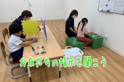 こんにちは(*^^*)大分ルームです! 今回は、小集団レッスンでの一コマをご紹介します🎵 この日はキューブ積み木を使って活動しました⭐ 先生の「赤い積み木を黄色の上に置いてください」「青の積み木...