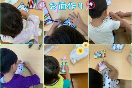 こんにちは🌞大分ルームです! 今回は、先月行った夏祭りの様子をご紹介します! 今年の夏祭りは、お面作りや射的、ヨーヨー釣りなどのお店を用意して開催しました🎐 お面作りでは、自分の好き...