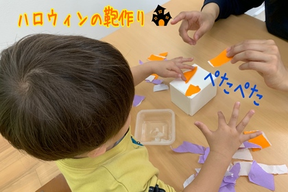 こんにちは🌞大分ルームです! 今回はハロウィン前に行った、B君の個別レッスンの様子をご紹介します☆彡 まずはハロウィンバッグ作り💡 手先を使ってオレンジや紫の折り紙を破り、指に糊を付けて貼っ...