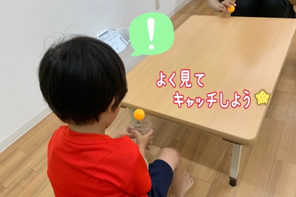 こんにちは🌞大分ルームです! 今回はA君の個別レッスンの様子をご紹介します!(^^)! まずは、転がってくるボールをコップでキャッチする「きゃっちしよう」という活動💡 ボールの動きをよく見て落下...