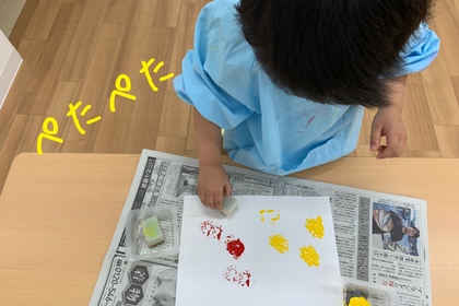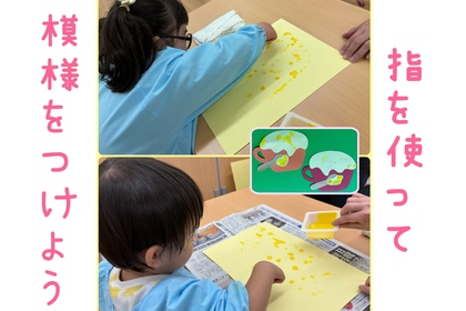 こんにちは🌞大分ルームです! 今日は久しぶりの晴れ間となりましたね(^▽^)/ さて今回は、子どもたちの製作の様子をご紹介します✂ A君とBちゃんは、指に黄色の絵の具を付け、画用紙に模様をつ...
