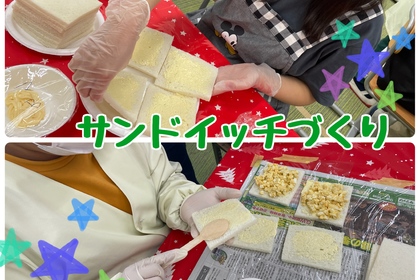 こんにちは🐻おおいた第2教室です☆彡 12月25日におおいた第2教室でクリスマス会を行いました! お昼ご飯も兼ねて、サンドイッチづくりを行いました🥪具材は、ツナマヨ、たまご、ジャム、レタスハムチー...