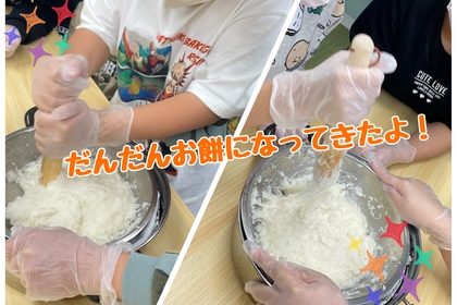 こんにちは🐰おおいた第2教室です。 第2教室では、お正月に飾る鏡餅づくりを兼ねて、室内でできるもちつきを行いました! 炊き立てのもち米をみんなで交代しながら麺棒でつき、弾力をつけていきました。段...