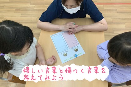 こんにちは🌞大分ルームです('ω')ノ 日中は過ごしやすい気候になってきましたね🍂 さて今回は、年長さんの集団レッスンの様子をご紹介します♪ この日のレッスンでは、①嬉しい言葉傷つく言葉②並...